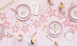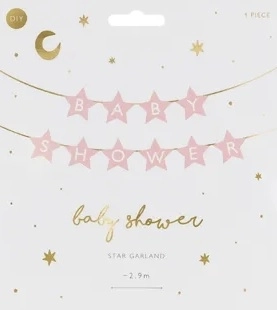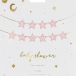 Ajoutez du charme à votre décoration de baby shower avec cette bannière en papier ornée d’étoiles et de l’inscription Baby Shower. La teinte rose pâle est idéale pour des décorations douces, élégantes et photogéniques.