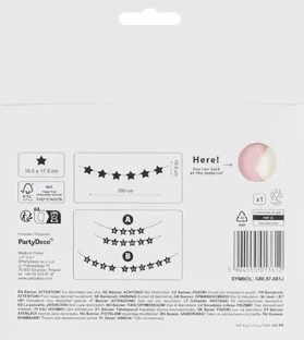 Les dimensions de la bannière sont de 290 × 16,5 cm, l’emballage mesure 180 × 200 mm. À combiner avec d’autres décorations pastel pour un rendu harmonieux de l’ensemble de la fête.