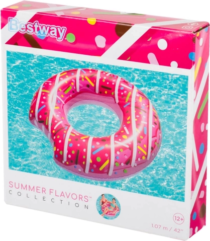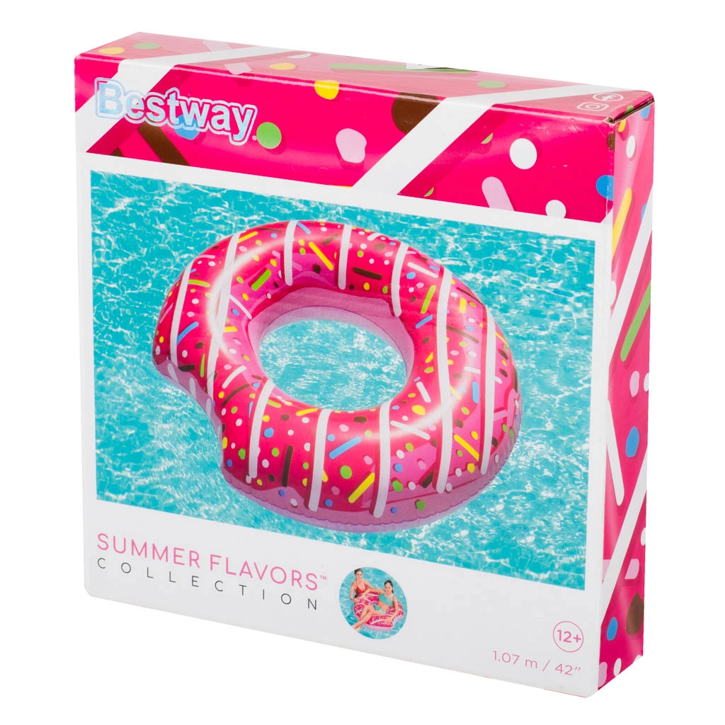 Amusez-vous avec cette bouée gonflable en forme de donut de BESTWAY, idéale pour un été rempli de détente et de jeux. Grâce à son diamètre de 107 cm, elle offre un excellent maintien pour se prélasser à la surface de l’eau comme pour les premières nages plus assurées. Son design rose avec éclats colorés est incontournable et rend toutes vos photos superbes.