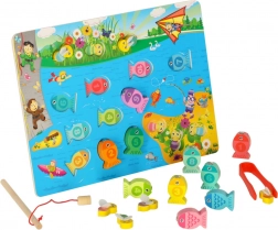 Ce set Montessori créatif propose trois façons de jouer : pêcher les poissons aimantés avec une canne, insérer les poissons numérotés dans les bonnes ouvertures et entraîner la motricité fine avec les abeilles à l’aide d’une pince. Les éléments multicolores motivent à jouer, tandis que la fabrication en bois de qualité, aux bords arrondis, garantit la sécurité.