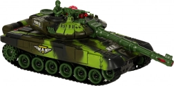 Le modèle offre de nombreux effets: phares LED avant, éclairage spectaculaire de la tourelle et sons authentiques du moteur, du tir de canon et de la mitrailleuse. Grâce aux chenilles souples en caoutchouc, il s’adapte à différents terrains et garde une excellente tenue de cap. La trappe ouvrante de la tourelle permet d’installer le tankiste fourni avec mitrailleuse. L’alimentation est assurée par une batterie rechargeable pour un usage économique et pratique.