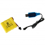 La boîte inclut une batterie avec un chargeur USB pour une utilisation pratique et économique. La radiocommande nécessite 2× AA (non incluses).