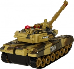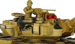 Le char RC en version désert offre une conduite fluide avant/arrière, des rotations sur place et une tourelle pivotante de 180° de chaque côté (soit un secteur de tir total de 360°). Les chenilles en caoutchouc souple assurent une bonne adhérence sur divers revêtements. Lors du tir, le char simule un recul réaliste accompagné de sons de moteur et de tirs.