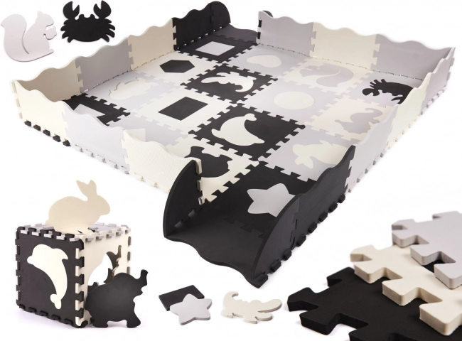 Un grand plaisir est garanti. Le puzzle grandit avec votre enfant et peut être assemblé sous forme de tapis ou de parc, devenant ainsi l'espace de jeu préféré de chaque petit explorateur.
