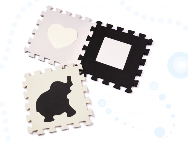 Ce grand tapis puzzle en mousse avec des éléments amovibles aux couleurs contrastées est idéal pour les jeunes enfants qui découvrent le monde des formes et des couleurs.