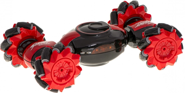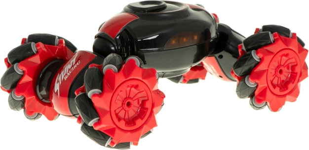 Voiture RC amusante et robuste avec double commande pour conduite dynamique et figures. Grâce aux roues multidirectionnelles, aux rotations à 360° et à deux modes de conduite (race/off-road), elle gère les sprints rapides comme les terrains difficiles. Le coffret inclut deux contrôleurs : un joystick classique et un contrôle gestuel Gravity Sensor à 2,4 GHz.
