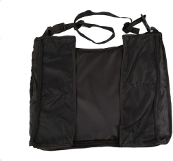 Quatre poches en maille pour les accessoires et des sangles réglables avec boucles pour une fixation rapide au siège auto ou à la poussette.