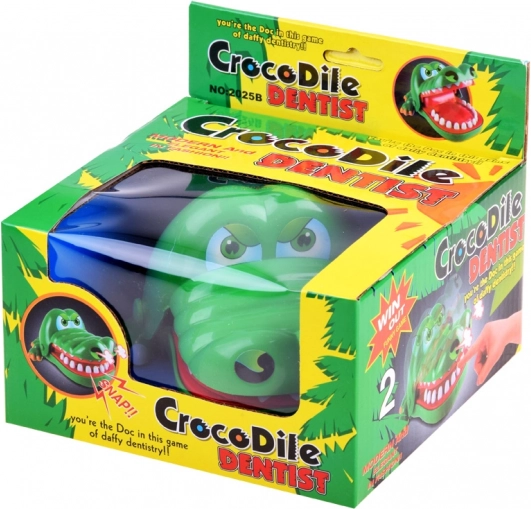 Devenez le dentiste d’un crocodile intrépide ! Les joueurs appuient tour à tour sur une dent – l’une est « douloureuse » et, lorsqu’on l’appuie, le crocodile referme soudain sa gueule. Jeu de réflexes rapide pour 2 joueurs et plus, apportant suspense, rires et entraînant réflexes et patience.