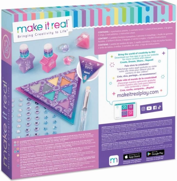 Éblouissez avec la Palette Mystic Crystal de Make it Real comprenant des fards à paupières et des vernis à ongles. Des applications scintillantes et des accessoires créatifs pour vos transformations stylées.