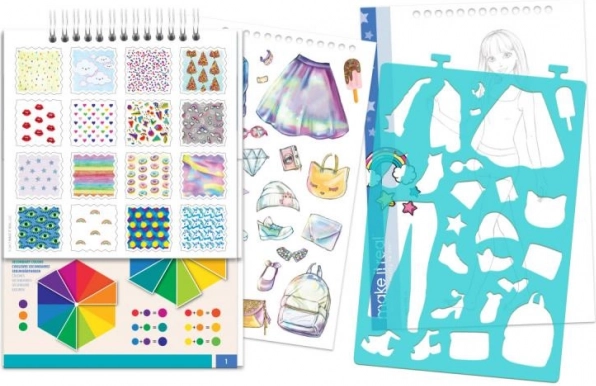 Kit créatif Portfolio de design Symboles pour enfants dès 6 ans, avec plus de 120 pochoirs et autocollants, et 14 pages inspirantes.
