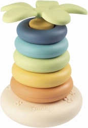 Découvrez un jouet ludique et écologique pour les tout-petits : la pyramide à anneaux Little Smoby Green. Cinq anneaux en plastique colorés s’empilent du plus grand au plus petit sur un cône, le tout surmonté d’un adorable petit palmier. Fabriqué en bioplastique, emballé dans un carton 100% recyclé – un choix sûr, éducatif et durable.