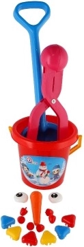 Tout ce dont vous avez besoin pour construire un bonhomme de neige facilement et avec amusement - seau, pelle et moules.