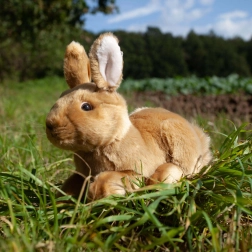Ce lapin en peluche brun en position assise/couchée séduit par sa fourrure douce, ses détails soignés et son rembourrage agréablement dodu. La marque RAPPA mise sur des matériaux de qualité et un travail artisanal, conférant au lapin un aspect fidèle et une grande résistance aux câlins du quotidien.