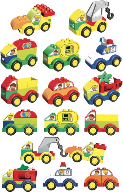 Découvrez l’univers créatif des véhicules avec un set universel de grands blocs grâce auquel les enfants construisent facilement des petites voitures colorées et d’autres moyens de transport. Le coffret comprend aussi des autocollants et une notice claire, pour commencer à s’amuser immédiatement. Les grandes pièces sont idéales pour les petites mains et développent la motricité fine ainsi que l’imagination.