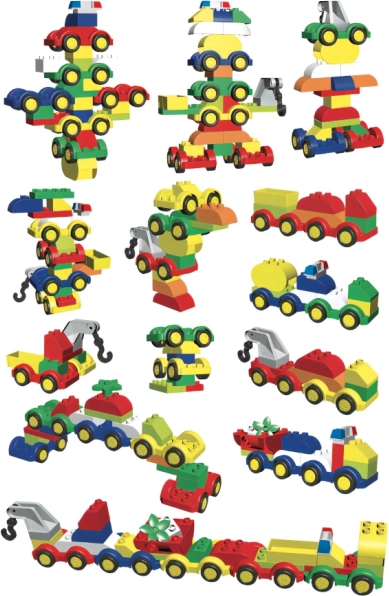 Les éléments modulaires permettent de créer sans cesse de nouveaux modèles. Les enfants peuvent assembler, démonter et améliorer librement les véhicules selon leur imagination.