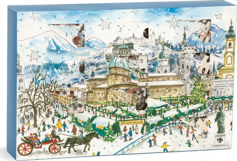 Ouvrez 12 fenêtres numérotées et assemblez chaque jour un nouveau motif hivernal. Chaque puzzle compte 80 pièces et présente les mêmes dimensions pour un assemblage quotidien confortable.