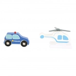 - Voiture de police, hélicoptère, 2 figurines, éléments d’intérieur