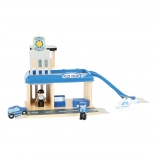 Offrez aux enfants un univers d’histoires d’action avec ce poste de police small foot en bois 100 % FSC®. La station à deux niveaux avec tour et héliport, cellule à grille coulissante et rampe d’accès est livrée avec de nombreux accessoires : voiture de police, hélicoptère et deux figurines. La combinaison robuste de bois et de plastique de qualité garantit une grande résistance et une longue durée de vie, et l’ensemble est en plus compatible avec les circuits de train d’autres fabricants.
