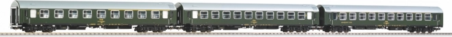 L’ensemble de trois voitures voyageurs ČSD « Express de l’Ouest » est fabriqué avec une précision qui respecte les détails historiques. Toutes les voitures disposent de quatre essieux et restituent parfaitement les détails des fenêtres, des portes et des bogies.