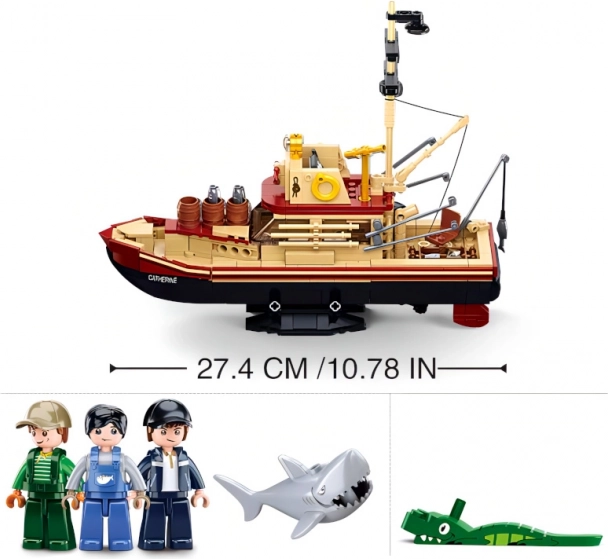 La construction du bateau de pêche Catherine apporte la joie du modélisme et est idéale pour les enfants et les adultes qui aiment les défis. Une fois assemblé, le bateau mesure plus de 27 cm et est accompagné d'un requin réaliste. Le jeu comprend trois figurines innovantes avec des parties du corps pivotantes et articulées, garantissant une plus grande flexibilité pendant le jeu.