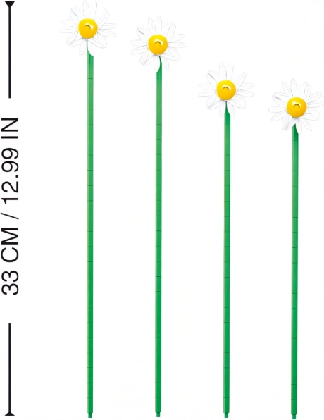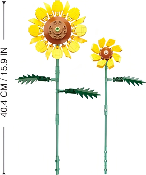 Une fois assemblé, vous obtenez deux tournesols imposants et quatre marguerites délicates – une décoration parfaite pour l’appartement et une idée cadeau originale pour les amateurs de fleurs et de briques de construction.