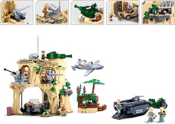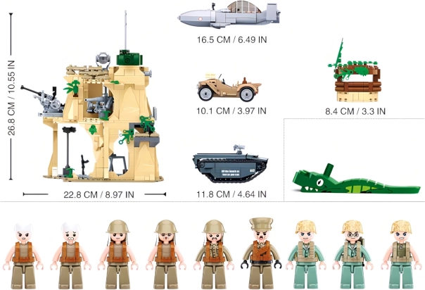 Un set de construction élaboré, inspiré de la bataille d’Iwo Jima, apporte tout ce dont les enfants et collectionneurs ont besoin pour un jeu d’action palpitant. Le coffret comprend une forteresse à plusieurs niveaux avec éléments défensifs, des véhicules de transport et de combat, ainsi qu’un ensemble de minifigurines aux parties articulées pour des scénarios réalistes. La difficulté moyenne de construction offre un défi agréable sans frustration inutile.