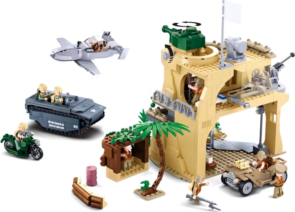 Construisez une base blindée avec tour de garde et complétez-la avec une jeep, un véhicule chenillé, un avion et une moto. La combinaison idéale pour des missions réalistes et des scénarios sans fin.