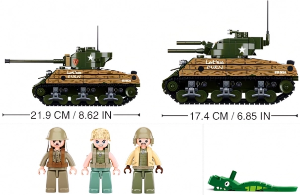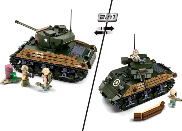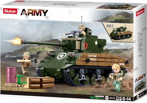 Plongez dans l’univers des batailles historiques avec le set réaliste Sluban Army WW2 M4A3 Sherman. Construisez deux versions différentes du célèbre char moyen américain, enrichissez votre collection ou créez vos propres scénarios. Le coffret ravira les passionnés de technique comme les enfants dès 8 ans.