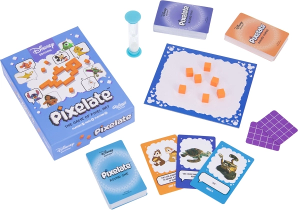 Disney Pixelate est un jeu de plateau vif et ingénieux où vous composez des motifs inspirés des univers DISNEY et PIXAR à partir de pixels en bois colorés. Chaque manche est chronométrée, le nombre de pixels disponibles diminue et la tension monte – saurez-vous recréer des objets et personnages iconiques avec seulement quelques pièces pour que les autres les reconnaissent ?