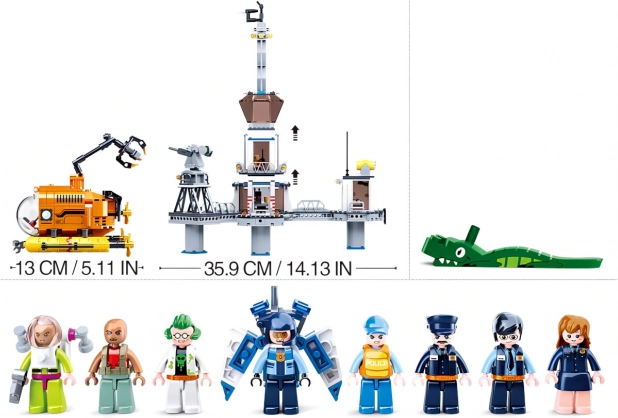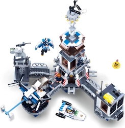 Le jeu de construction Prison pour super-vilains est idéal pour une armée de petits passionnés qui souhaitent créer leur propre monde plein d'expériences et d'action. La construction comprend une base solide avec des structures variées, y compris des tours et des véhicules, permettant des jeux imaginatifs.