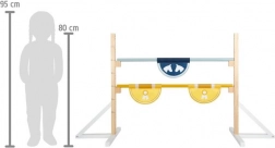 Ce set est idéal pour jouer au « cheval » (hobby horsing) ou pour l’agility canine. Les enfants peuvent régler la hauteur de l’obstacle en fonction de leurs compétences et essayer de sauter par-dessus les barres, agrémentées de petits drapeaux décoratifs. Grâce au bois massif et aux bases stables, la structure est très résistante et sûre pour les jeunes sportifs.
