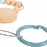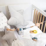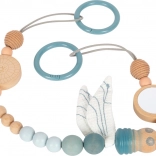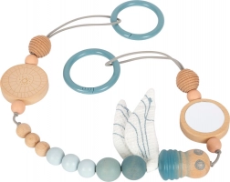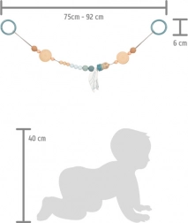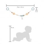 La longueur réglable permet un ajustement parfait – il suffit de déplacer une perle ou de raccourcir la sangle. La chaîne convient également à une suspension verticale, ce qui la rend pratique au-dessus de la table à langer ou près du lit. Une excellente idée de cadeau pour nouveau-né et un indispensable du premier trousseau.