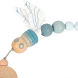 Cette chaîne de poussette design SMALL FOOT au style naturel séduit par la combinaison de perles en bois de différentes tailles, de doux tons pastels et d’éléments textiles. Grâce au cordon élastique, elle s’adapte à divers types de poussettes ou de poignées, et les points pression sur les anneaux de fixation la maintiennent solidement en place. La libellule en tissu avec ailes bruissantes stimule les sens et la motricité fine du bébé.