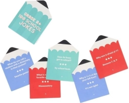 Ce coffret comprend des cartes en forme de crayons avec des blagues scolaires amusantes. Chaque carte est unique grâce à son design coloré.