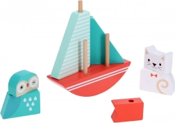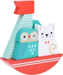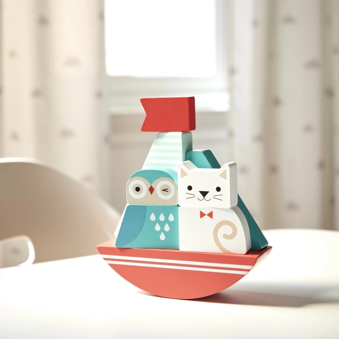 Nous vous présentons un adorable jouet en bois, idéal pour les plus petits explorateurs. Le bateau à assembler et équilibrer avec un motif de chouette et de chat offre un divertissement créatif et éducatif pour les enfants dès 12 mois. Ce jouet est composé de pièces en bois robustes, agréables au toucher et propices à la créativité.