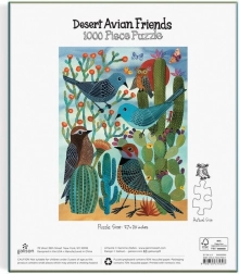 Découvrez la beauté du désert ensoleillé dans un puzzle original aux motifs d’oiseaux par l’artiste Geninne Zlatkis. 1000 pièces découpées avec précision, finition mate pour des couleurs fidèles, matériaux écologiques certifiés FSC et boîte solide et réutilisable font de ce puzzle un excellent cadeau et un plaisir pour toute la famille.