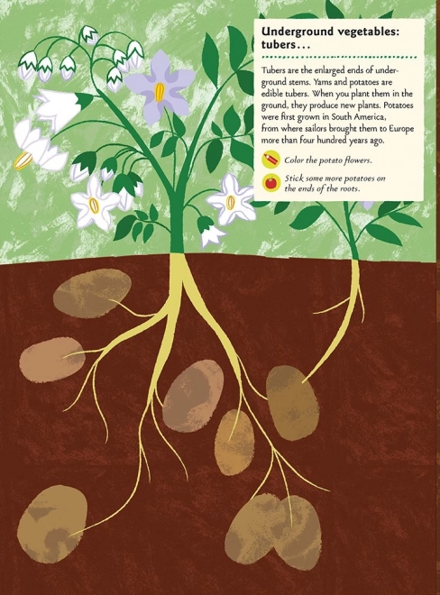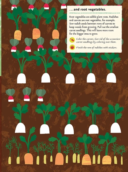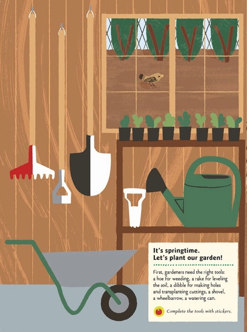 Les petits jardiniers apprendront à reconnaître différentes variétés de légumes et de fruits, à les semer, les arroser et en prendre soin correctement, ainsi qu’à connaître les outils nécessaires. Grâce aux autocollants et au quiz, l’apprentissage est amusant, motivant et riche en découvertes.