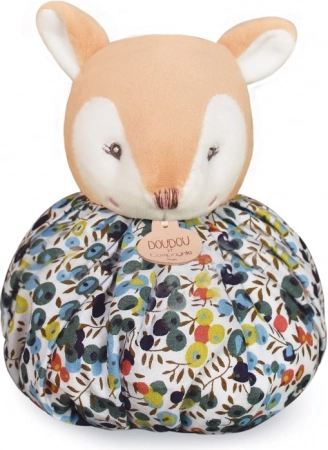 Ce doudou tout moelleux en forme de biche est conçu pour accompagner bébé dès ses premiers jours. La combinaison de matières très douces et de couleurs harmonieuses apporte un sentiment de sécurité et de calme. Il se transforme facilement d’un jouet en couverture ou en balle toute douce pour s’amuser en déplacement.