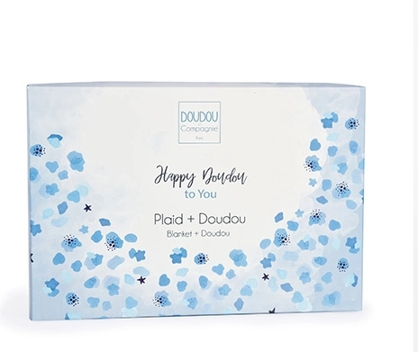 Élégant et pratique, le coffret est présenté dans une boîte bleu-gris avec l’inscription « Happy Doudou to You », ce qui en fait un choix parfait pour un cadeau de fête. L’entretien se fait par lavage à 30 °C et séchage naturel ou à basse température.