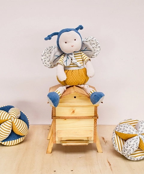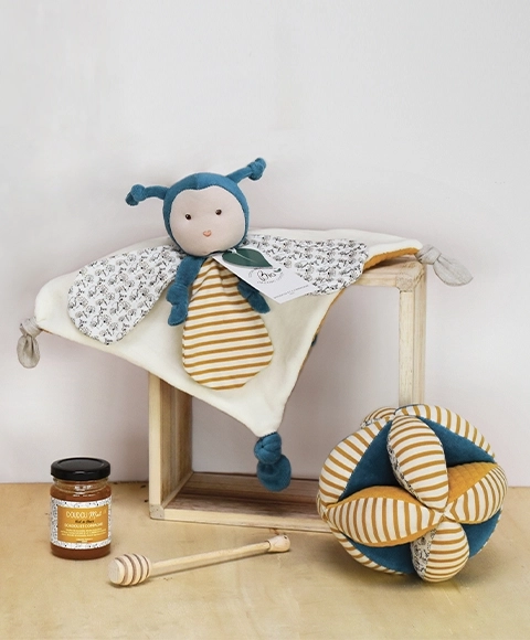 La boule d’activité textile Abeille est un jouet parfait pour les tout-petits. Sa texture moelleuse attire les enfants et favorise la stimulation tactile et la prise en main facile. Cette balle intègre un hochet qui capte l’attention et contribue au développement de l’ouïe.