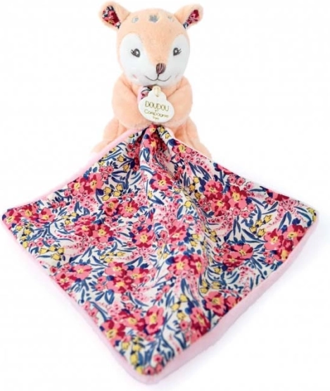 Ce charmant ensemble ravira chaque nouveau-né dès ses premiers jours. La biche en peluche toute douce offre un câlin rassurant, tandis que la couverture moelleuse à l’imprimé coton frais apaise délicatement et tient chaud. Le petit format de la biche est idéal pour les petites mains et favorise l’éveil des sens et la curiosité.