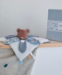 Adorable doudou ourson, créé pour les premiers câlins de bébé. Il offre un matériau ultra doux et apaisant, une finition premium et un format compact pour les nouveau-nés. Grâce à son imprimé coton frais, il éveille les sens et la curiosité. Livré dans une élégante boîte cadeau, idéale dès la naissance.