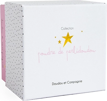 Praticité et sécurité avant tout – le jouet est facile à laver et fabriqué en textiles de qualité conformes aux normes CE. L’élégante boîte cadeau à pois en fait un présent joli et prêt à offrir.