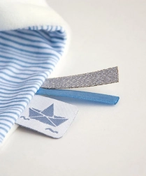 Découvrez la magie du Lapin Marin, livré dans une magnifique boîte cadeau évoquant modernité et luxe. Ce lapin adorable porte un t-shirt rayé bleu et blanc et est orné d’une petite couronne. Il tient dans sa main une couverture servant de doudou, facile à saisir par les petites mains de votre enfant.