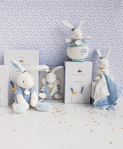 Ce joli lapin en peluche sert non seulement de jouet, mais aussi d’attache‑sucette pratique, garantissant que la sucette reste toujours à portée de main. Le compagnon parfait pour votre bébé, lui apportant douceur et confort dès les premiers jours de vie.