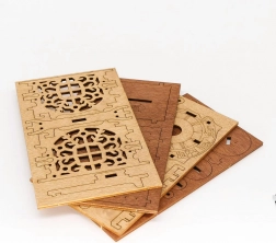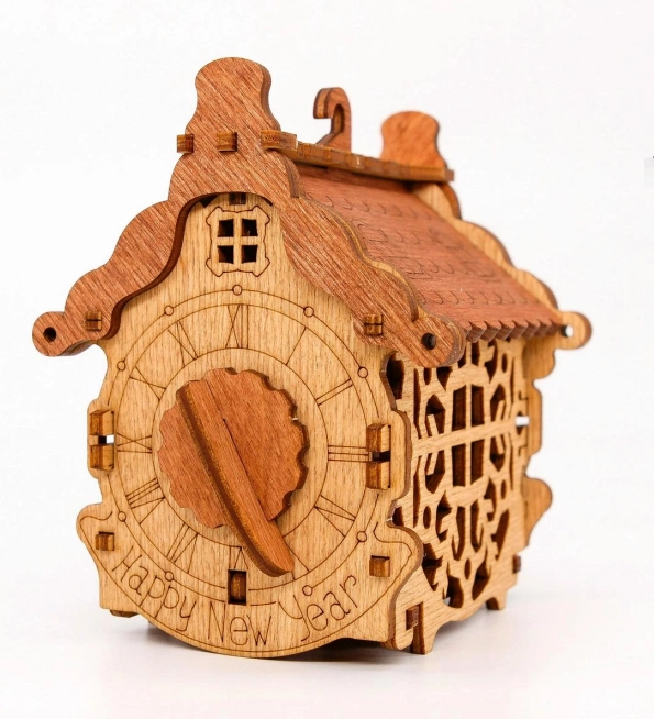 La boîte est fabriquée en bois naturel de qualité avec des découpes laser détaillées, pour un rendu à la fois rustique et raffiné. Elle est parfaite comme emballage cadeau original, décoration de Nouvel An ou petit présent pour les amateurs d’énigmes et d’escape games.