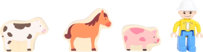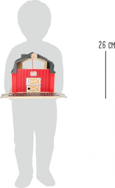 Cette ferme en bois SMALL FOOT est un set de jeu idéal pour les enfants dès 3 ans. Elle offre des éléments réalistes – grange avec doubles portes, grue fonctionnelle pour stocker le foin à l’étage et bottes magnétiques faciles à soulever et à transporter avec le tracteur et la remorque fournis. Sont inclus également un cheval, une vache, un petit cochon et six éléments d’enclos.