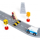 Cet ensemble routier en bois est un cadeau idéal pour votre enfant. Il offre des heures de divertissement tout en favorisant l’imagination, l’habileté et la coordination.