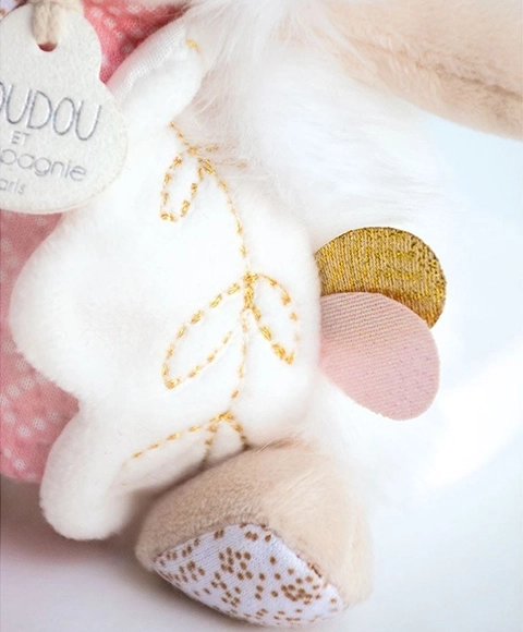 Son look pastel élégant et sa finition de qualité sont conformes aux normes européennes CE. Le jouet s’entretient facilement: il suffit de le laver à 30 °C puis de le laisser sécher à l’air libre ou à basse température. Une excellente idée cadeau pour une naissance ou pour Noël.