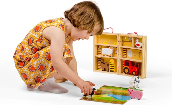 Les enfants peuvent découvrir l’univers de la ferme, nommer les animaux et inventer leurs propres histoires. Le set développe le vocabulaire, la motricité et les compétences sociales lors du jeu partagé. Grâce aux couleurs vives et aux détails authentiques de la ferme, le jeu est naturellement attrayant et durablement amusant.